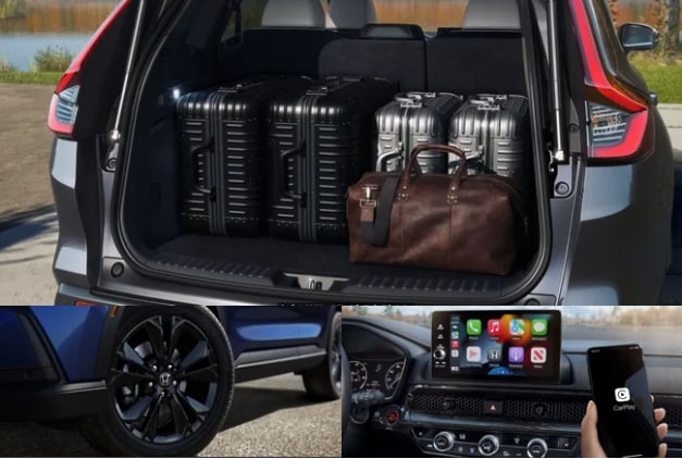 Subtle elegance or aggressive sportiness? The 2024 Honda CR-V gives you a plethora of choices with its diverse lineup of trim levels. Gas-only models include the versatile LX, with robust LED headlights featuring automatic on/off, sleek 17-inch steel wheels, and handsome body-colored powered side mirrors. The EX and EX-L trims build upon this, with the former introducing 18-inch wheels, a magnificent power moonroof, and heated side mirrors boasting integrated LED turn indicators, while the latter adds the convenience of a power tailgate. Hybrid enthusiasts aren't left out. The CR-V branches out into Sport Hybrid, Sport-L, and Sport Touring Hybrid trims. Each embraces LED headlights, gloss-black roof rails, and impressive 18- and 19-inch wheels as standard. With these trims, one can also expect elegant dual chrome exhaust finishers and the convenience of a power tailgate. The Sport Touring Hybrid tops off the range with real-time all-wheel drive with an intelligent control system.
