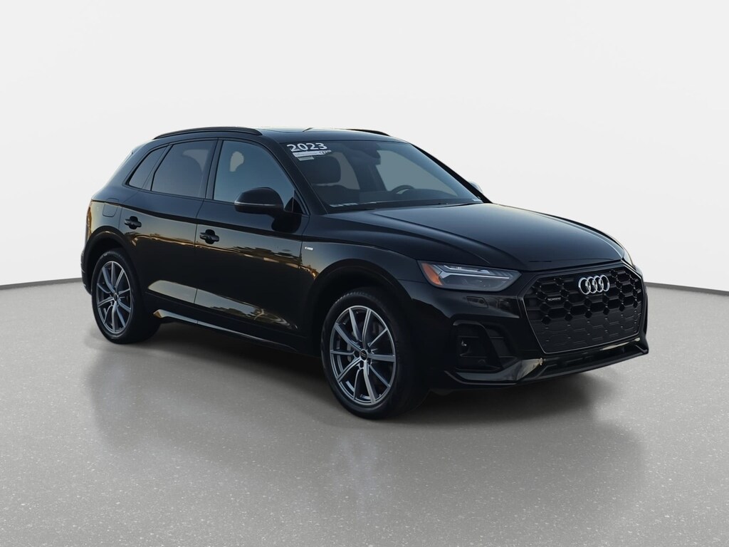 CARFAX One-Owner. Certified. 2023 Audi Q5 e Mythos Black Metallic 55 Prestige S Line quattro 7-Speed Automatic S tronic 2.0L Turbocharged 2.0L Turbocharged, Adaptive Air Suspension, Audi Active Lane Assist, Audi Phone Box, Bang & Olufsen Sound System w/3D Sound, Black Headliner, Brushed Aluminum Inlays, Convenience Package, Deluxe Pre-Entry Climate Control, Dual Pane Acoustic Glass for Front Side Windows, Hands-On Detection Steering Wheel, Head-Up Display, Heated Rear Seats, Leather/Dinamica Seats, LED Interior Lighting Plus Package, Matrix-Design LED Headlights w/Headlight Washers, Navigation Package, Panoramic Sunroof, Park Assist, Power Adjustable Steering Column, Prestige Package, Sport Plus Package for Prestige, Top View Camera System, Traffic Jam Assist, Traffic Sign Recognition, Warm Weather Package, Wheels: 20" 10-Spoke-Star Design, Platinum Finish.