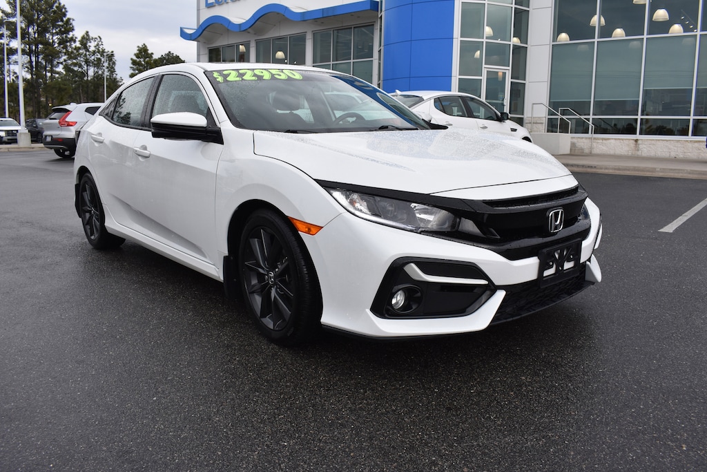 CARFAX One-Owner. Platinum White Pearl 2021 Honda Civic EX FWD CVT 1.5L I4 DOHC 16V 4-Wheel Disc Brakes, 8 Speakers, ABS brakes, Adaptive Cruise Control: Adaptive Cruise Control (ACC) with Low-Speed Follow, Air Conditioning, Alloy wheels, AM/FM radio: SiriusXM, Apple CarPlay/Android Auto, Auto High-beam Headlights, Automatic temperature control, Brake assist, Bumpers: body-color, Delay-off headlights, Dual front impact airbags, Dual front side impact airbags, Electronic Stability Control, Emergency communication system: HondaLink, Exterior Parking Camera Rear, Fabric Seating Surfaces, Forward collision: Collision Mitigation Braking System (CMBS) + FCW mitigation, Four wheel independent suspension, Front anti-roll bar, Front dual zone A/C, Front fog lights, Fully automatic headlights, Heated door mirrors, Heated Front Bucket Seats, Heated front seats, Illuminated entry, Lane departure: Lane Keeping Assist System (LKAS) active, Leather Shift Knob, Low tire pressure warning, Occupant sensing airbag, Outside temperature display, Overhead airbag, Panic alarm, Power door mirrors, Power driver seat, Power moonroof, Power steering, Power windows, Radio data system, Radio: 180-Watt HD Audio System, Rear anti-roll bar, Rear window defroster, Rear window wiper, Remote keyless entry, Security system, Speed control, Speed-sensing steering, Split folding rear seat, Spoiler, Steering wheel mounted audio controls, Tachometer, Telescoping steering wheel, Tilt steering wheel, Traction control, Trip computer, Variably intermittent wipers.