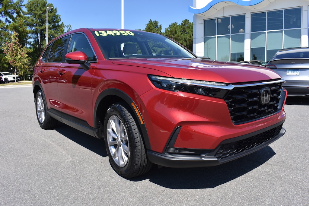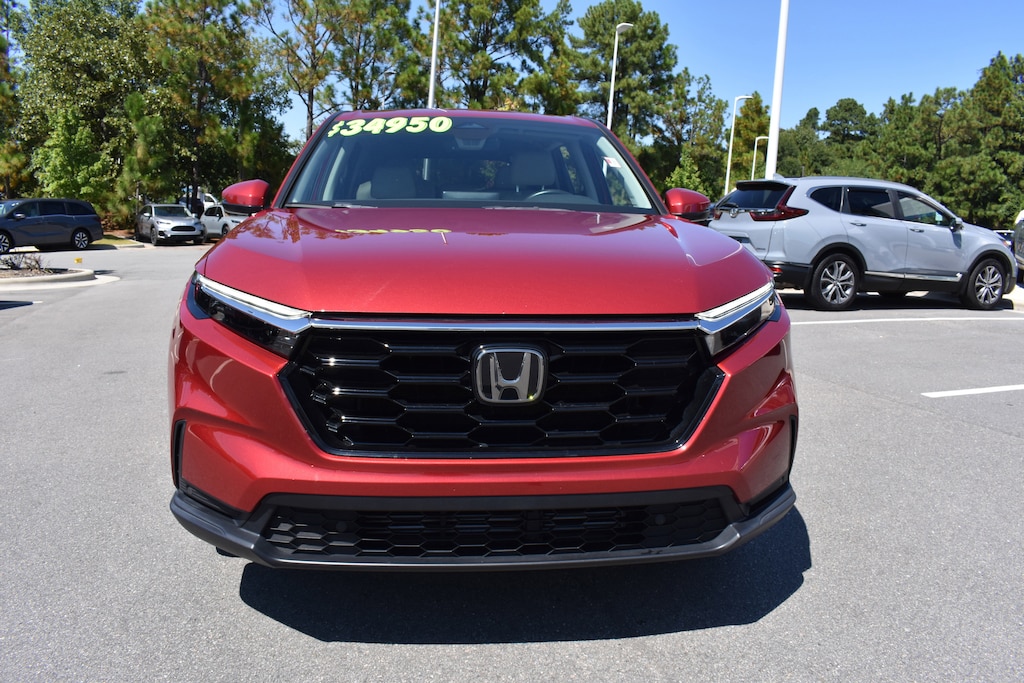 Clean CARFAX. CARFAX One-Owner. Certified. Radiant Red Metallic 2024 Honda CR-V EX-L AWD CVT 1.5L I4 DOHC 16V 4-Wheel Disc Brakes, 5.64 Axle Ratio, 8 Speakers, ABS brakes, Adaptive Cruise Control: Adaptive Cruise Control (ACC) with Low-Speed Follow, Air Conditioning, Alloy wheels, AM/FM radio: SiriusXM, Auto High-beam Headlights, Auto-dimming Rear-View mirror, Automatic temperature control, Blind Spot Information (BSI) System warning, Brake assist, Bumpers: body-color, Compass, Delay-off headlights, Dual front impact airbags, Dual front side impact airbags, Electronic Stability Control, Exterior Parking Camera Rear, Four wheel independent suspension, Front anti-roll bar, Front dual zone A/C, Fully automatic headlights, Heated door mirrors, Heated Front Bucket Seats, Heated front seats, Illuminated entry, Knee airbag, Leather Seat Trim, Leather Shift Knob, Leather steering wheel, Low tire pressure warning, Memory seat, Occupant sensing airbag, Outside temperature display, Overhead airbag, Panic alarm, Passenger vanity mirror, Power door mirrors, Power driver seat, Power Liftgate, Power moonroof, Power passenger seat, Power steering, Power windows, Radio data system, Radio: 320-Watt AM/FM/HD/SiriusXM Audio System, Rear anti-roll bar, Rear side impact airbag, Rear window defroster, Rear window wiper, Remote keyless entry, Security system, Speed control, Speed-sensing steering, Speed-Sensitive Wipers, Split folding rear seat, Spoiler, Steering wheel mounted audio controls, Tachometer, Telescoping steering wheel, Tilt steering wheel, Traction control, Trip computer, Turn signal indicator mirrors, Variably intermittent wipers, Wheels: 18" Sparkle Silver Metallic, Wireless Apple CarPlay/Wireless Android Auto.