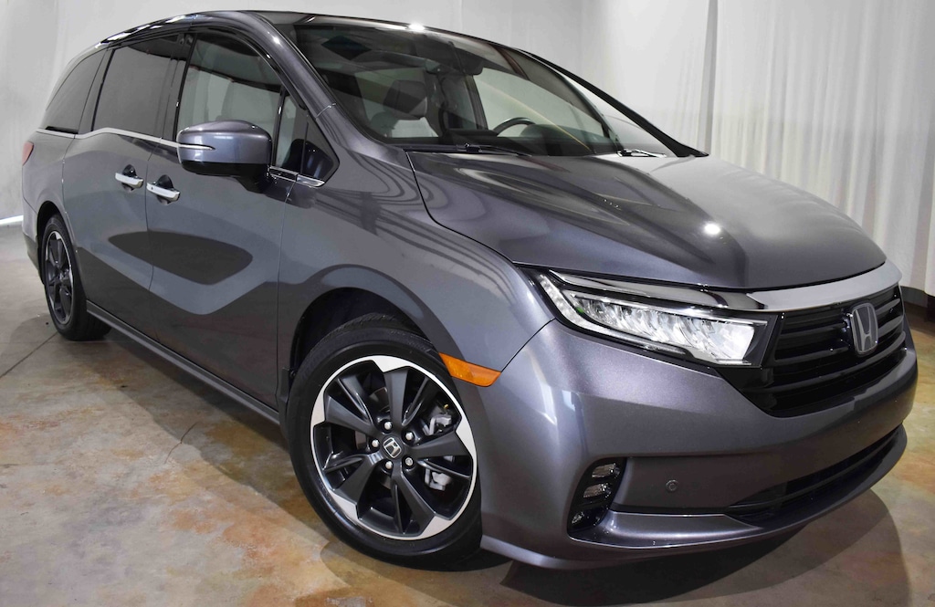 CARFAX One-Owner. Certified. Modern Steel Metallic 2024 Honda Odyssey Elite FWD 10-Speed Automatic 3.5L V6 SOHC i-VTEC 24V 11 Speakers, 3.61 Axle Ratio, 3rd row seats: split-bench, 4-Wheel Disc Brakes, A/V remote: CabinControl, ABS brakes, Adaptive Cruise Control: Adaptive Cruise Control (ACC) with Low-Speed Follow, Air Conditioning, Alloy wheels, AM/FM radio: SiriusXM, Anti-whiplash front head restraints, Apple CarPlay/Android Auto, Auto High-beam Headlights, Auto-dimming door mirrors, Auto-dimming Rear-View mirror, Automatic temperature control, Blind Spot Information (BSI) System warning, Brake assist, Bumpers: body-color, CD player, Compass, Delay-off headlights, Dual front impact airbags, Dual front side impact airbags, DVD-Audio, Electronic Stability Control, Emergency communication system: HondaLink, Exterior Parking Camera Rear, Four wheel independent suspension, Front anti-roll bar, Front dual zone A/C, Front fog lights, Fully automatic headlights, Garage door transmitter: HomeLink, Headphones, Heated door mirrors, Heated Front Bucket Seats, Heated front seats, Heated steering wheel, Illuminated entry, Knee airbag, Lane departure: Lane Keeping Assist System (LKAS) active, Leather Seat Trim, Leather steering wheel, Low tire pressure warning, Memory seat, Navigation system: Honda Satellite-Linked Navigation System, Occupant sensing airbag, Outside temperature display, Overhead airbag, Panic alarm, Passenger seat mounted armrest, Power door mirrors, Power driver seat, Power Liftgate, Power moonroof, Power passenger seat, Power steering, Power windows, Radio data system, Radio: 500-Watt AM/FM/HD Premium Audio System, Rain sensing wipers, Rear air conditioning, Rear anti-roll bar, Rear audio controls, Rear window defroster, Rear window wiper, Reclining 3rd row seat, Remote keyless entry, Security system, Speed control, Speed-sensing steering, Speed-Sensitive Wipers, Split folding rear seat, Spoiler, Steering wheel mounted audio controls, Tachometer, Telescoping steering wheel, Tilt steering wheel, Traction control, Trip computer, Turn signal indicator mirrors, Variably intermittent wipers, Wheels: 19" Unique Machine-Finished Alloy.