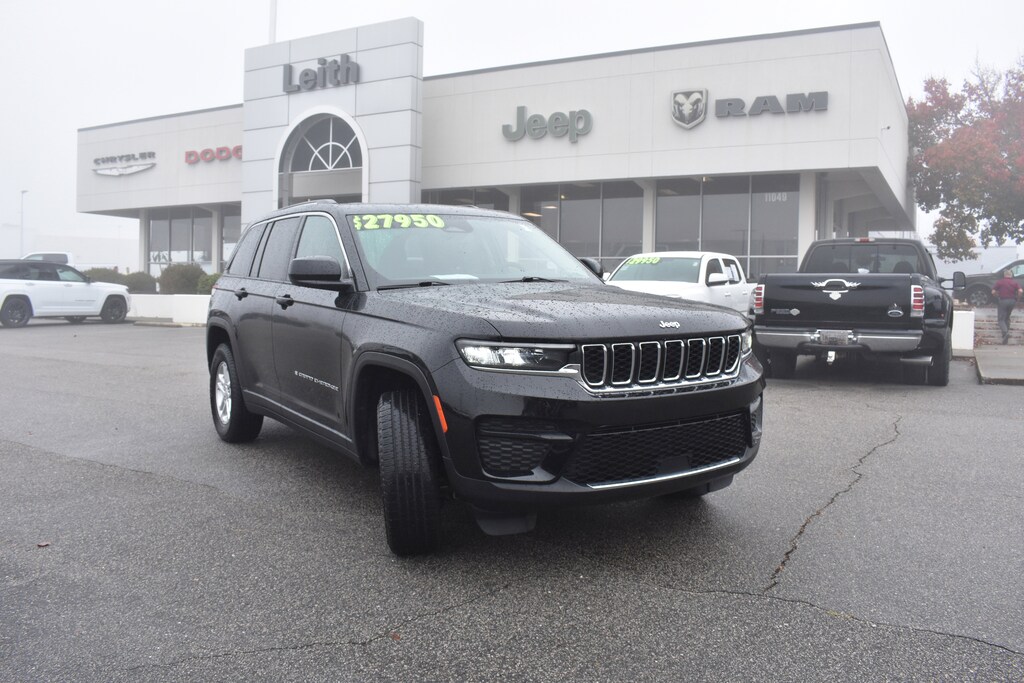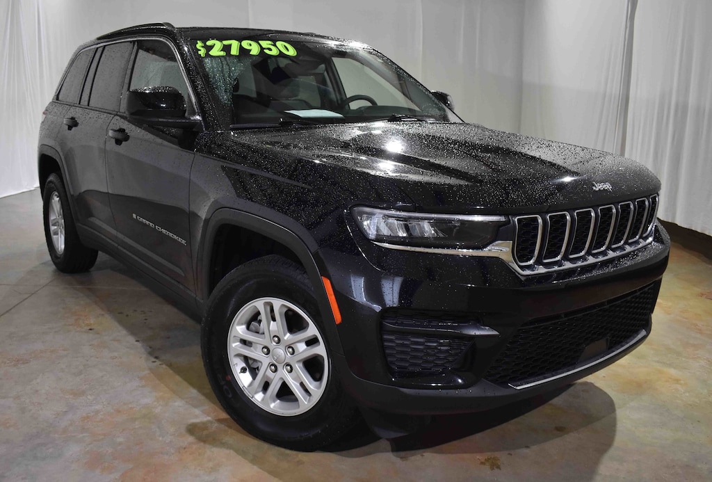 CARFAX One-Owner. Certified. Diamond Black Crystal Pearlcoat 2023 Jeep Grand Cherokee Laredo 4WD 8-Speed Automatic 3.6L V6 24V VVT 3.45 Rear Axle Ratio, 4-Wheel Disc Brakes, 6 Speakers, ABS brakes, Air Conditioning, Alloy wheels, Anti-whiplash front head restraints, Automatic temperature control, Brake assist, Bumpers: body-color, Cloth Seats, Compass, Delay-off headlights, Dual front impact airbags, Dual front side impact airbags, Electronic Stability Control, Emergency communication system, Four wheel independent suspension, Front anti-roll bar, Front Center Armrest w/Storage, Front dual zone A/C, Fully automatic headlights, Heated door mirrors, Illuminated entry, Knee airbag, Low tire pressure warning, Molded In Color Black/Gloss Black Roof Rails, Normal Duty Suspension, Occupant sensing airbag, Overhead airbag, Panic alarm, ParkView Rear Back-Up Camera, Passenger door bin, Passenger vanity mirror, Power door mirrors, Power driver seat, Power steering, Power windows, Quick Order Package 22A Laredo, Radio data system, Radio: Uconnect 5 w/8.4" Display, Rear anti-roll bar, Rear window defroster, Rear window wiper, Remote keyless entry, Security system, Speed control, Speed-Sensitive Wipers, Split folding rear seat, Spoiler, Steering wheel mounted audio controls, Tachometer, Telescoping steering wheel, Tilt steering wheel, Traction control, Trip computer, Variably intermittent wipers, Voltmeter, Wheels: 17" x 6.5" Fully Painted Aluminum.