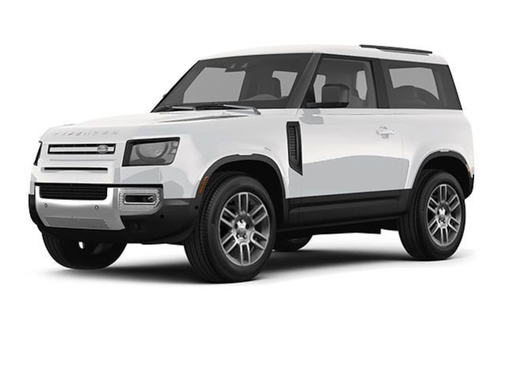 Certified. Fuji White 2023 LAND ROVER Defender 90 S 4WD 8-Speed Automatic 2.0L Turbocharged Black Contrast Roof, Black Exposed Rear Recovery Eyes, Opening Panoramic Sunroof, Tow Hitch Receiver, Wheels: 19" Gloss Black Style 6010.
