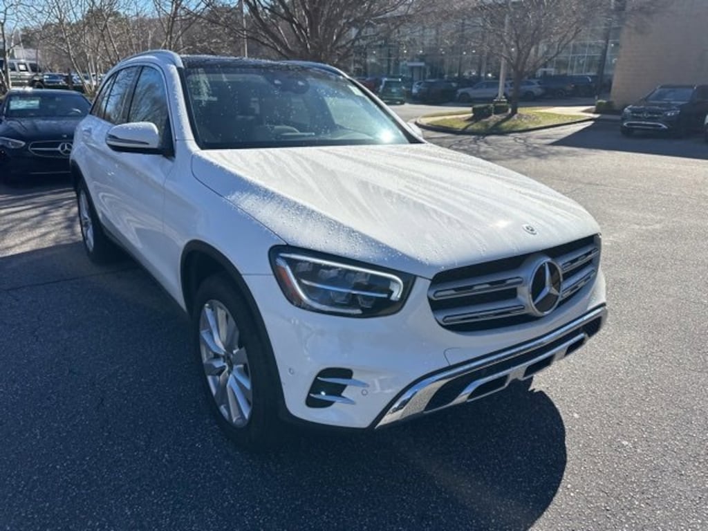 Certified. Polar White 2021 Mercedes-Benz GLC GLC 300 4MATIC® I4 10.25" Center Touchscreen Display, 4-Way Lumbar Support, 4-Wheel Disc Brakes, 6 Speakers, ABS brakes, Air Conditioning, AM/FM radio, Apple CarPlay®/Android Auto®, Augmented Video for Navigation, Auto tilt-away steering wheel, Auto-dimming door mirrors, Auto-dimming Rear-View mirror, Automatic temperature control, Brake assist, Bumpers: body-color, Child-Seat-Sensing Airbag, Delay-off headlights, Driver door bin, Driver vanity mirror, Dual front impact airbags, Dual front side impact airbags, Electronic Stability Control, Emergency communication system: eCall Emergency System, Exterior Parking Camera Rear, Four wheel independent suspension, Front anti-roll bar, Front Bucket Seats, Front Center Armrest, Front dual zone A/C, Front reading lights, Fully automatic headlights, Garage door transmitter: HomeLink, Genuine wood dashboard insert, Heated door mirrors, Heated Front Bucket Seats, Heated front seats, Heated Steering Wheel, Illuminated entry, Knee airbag, Leather steering wheel, Low tire pressure warning, MB Hard-Disc Navigation w/Live Traffic, MB-Tex Upholstery, Memory seat, Multimedia Package, Navigation Services, Occupant sensing airbag, Outside temperature display, Overhead airbag, Overhead console, Panic alarm, Panorama Sunroof, Passenger door bin, Passenger vanity mirror, Power door mirrors, Power driver seat, Power Front Seat w/Driver Memory, Power Liftgate, Power passenger seat, Power steering, Power windows, Radio data system, Radio: MBUX Multimedia System, Radio: MBUX Premium Multimedia System, Rear anti-roll bar, Rear fog lights, Rear reading lights, Rear seat center armrest, Rear window defroster, Remote keyless entry, Roof rack: rails only, Security system, Speed control, Speed-sensing steering, Split folding rear seat, Spoiler, Steering wheel memory, Steering wheel mounted audio controls, Tachometer, Telescoping steering wheel, Tilt steering wheel, Traction control, Trip computer, Turn signal indicator mirrors, Wheels: 8J x 19 ET 38 10-Spoke.