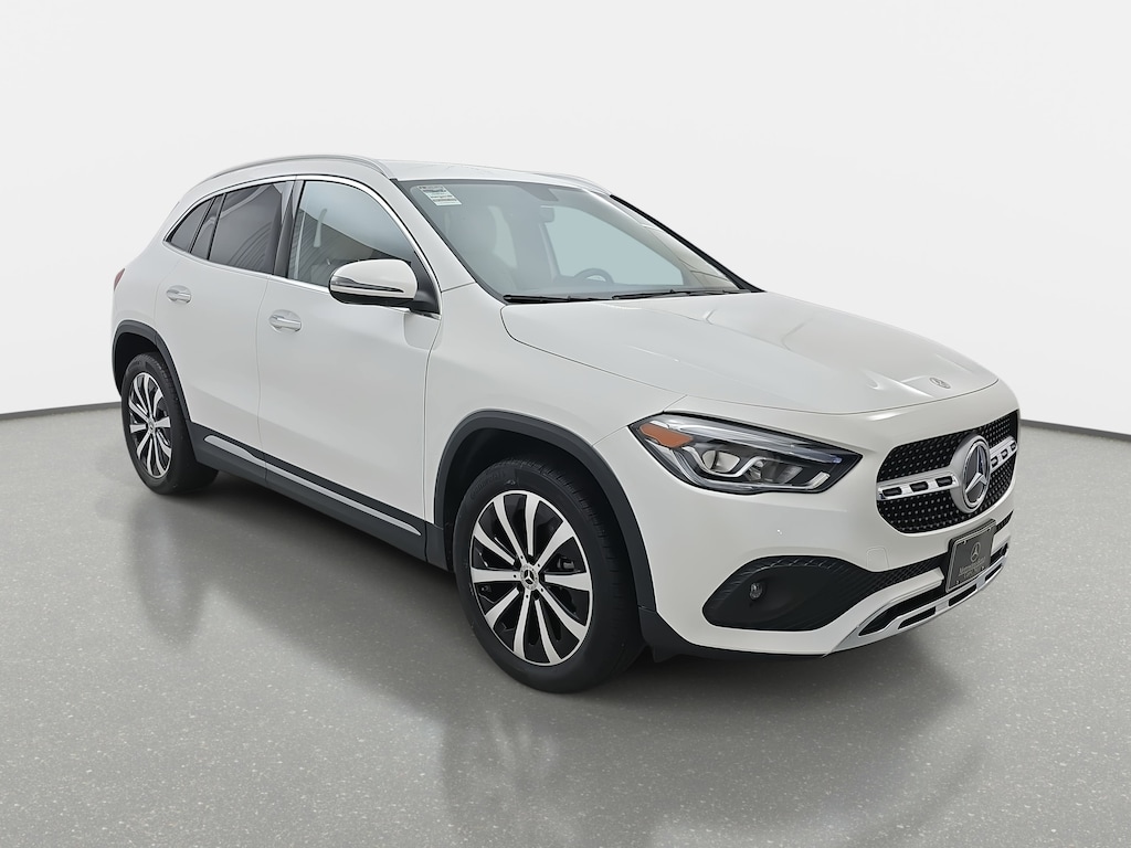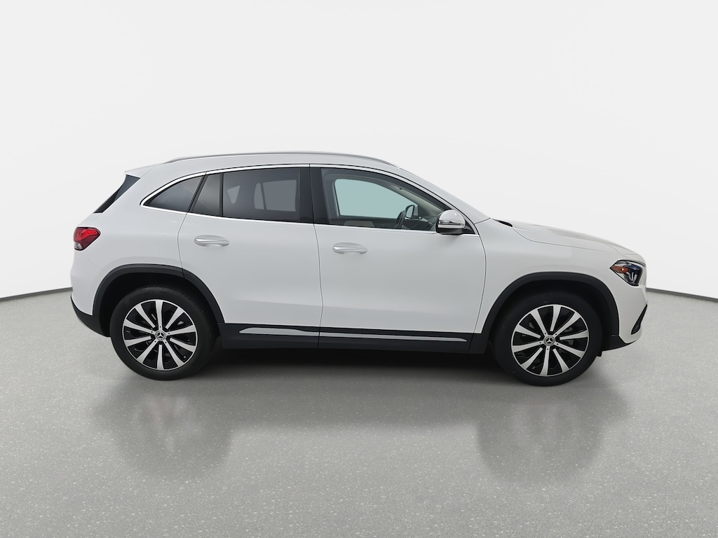 Certified. White 2022 Mercedes-Benz GLA GLA 250 4MATIC® 2.0L I4 Turbocharged 10.25" Digital Instrument Cluster, 10.25" Media Display w/Touchscreen, 115V Outlet, 19" AMG® Twin 5-Spoke Wheels, 4-Wheel Disc Brakes, 6 Speakers, ABS brakes, Air Conditioning, AM/FM radio, Apple CarPlay®/Android Auto®, Auto Dimming Rearview & Driver's Side Mirrors, Automatic temperature control, Brake assist, Bumpers: body-color, Child-Seat-Sensing Airbag, Delay-off headlights, Driver door bin, Driver vanity mirror, Dual front impact airbags, Dual front side impact airbags, Electronic Stability Control, Emergency communication system: eCall Emergency System and Active Emergency Stop Assist, Exterior Parking Camera Rear, Four wheel independent suspension, Front anti-roll bar, Front Bucket Seats, Front Center Armrest, Front dual zone A/C, Front fog lights, Front Power Comfort Seats, Front reading lights, Fully automatic headlights, Heated door mirrors, Heated Steering Wheel, Illuminated entry, KEYLESS GO®, Knee airbag, Low tire pressure warning, MB-Tex Upholstery, Memory seat, Multifunction Steering Wheel in Leather, Occupant sensing airbag, Outside temperature display, Overhead airbag, Overhead console, Panic alarm, Passenger door bin, Passenger vanity mirror, Power door mirrors, Power driver seat, Power Folding Mirrors, Power passenger seat, Power steering, Power windows, Premium Package Lite, Radio data system, Radio: Mercedes-Benz User Experience (MBUX), Rain sensing wipers, Rear anti-roll bar, Rear fog lights, Rear reading lights, Rear window defroster, Rear window wiper, Remote keyless entry, Roof rack: rails only, Security system, Speed-sensing steering, Split folding rear seat, Spoiler, Steering wheel mounted audio controls, Tachometer, Telescoping steering wheel, Tilt steering wheel, Traction control, Trip computer, Turn signal indicator mirrors, Variably intermittent wipers.