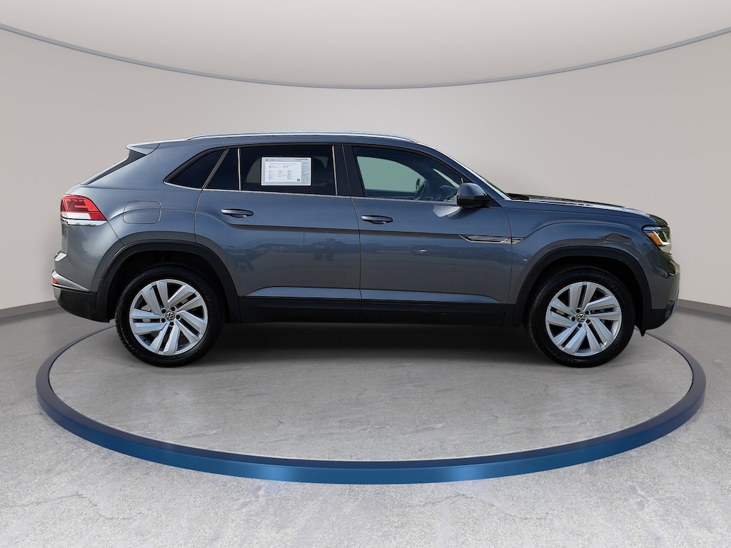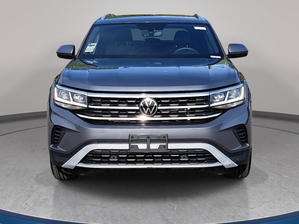 Certified. Platinum Gray Metallic 2023 Volkswagen Atlas Cross Sport 3.6L V6 SE w/Technology AWD 8-Speed Automatic with Tiptronic 3.6L VR6 3.60 Axle Ratio, AM/FM radio: SiriusXM with 360L, Automatic temperature control, Brake assist, Electronic Stability Control, Exterior Parking Camera Rear, Four wheel independent suspension, Front dual zone A/C, Fully automatic headlights, Heated front seats, Panoramic Sunroof Package, Perforated V-Tex Leatherette Seating Surfaces, Power driver seat, Power Liftgate, Power Tilting & Sliding Panoramic Sunroof, Radio: MIB3 Composition Media w/8" Touchscreen, Rain sensing wipers, Rear window wiper, Remote keyless entry, Speed-sensing steering, Split folding rear seat, Steering wheel mounted audio controls, Traction control, Wheels: 20" x 8J 5-Spoke Silver Painted Alloy.
