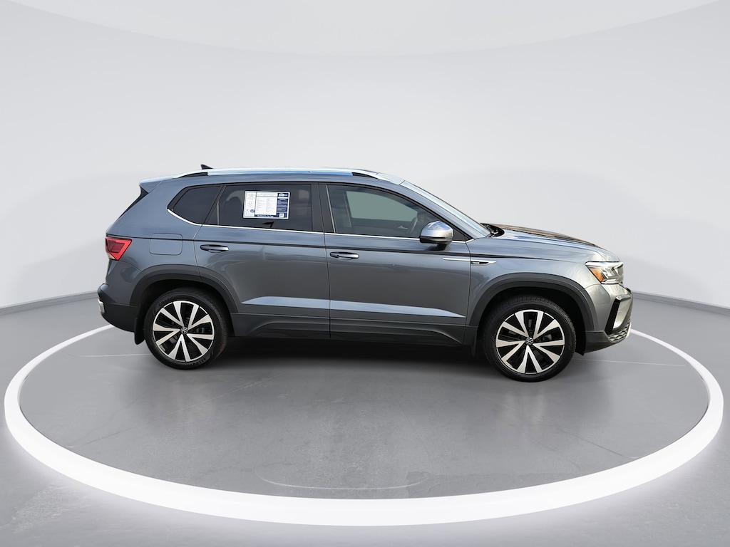 Certified. Platinum Gray Metallic 2023 Volkswagen Taos 1.5T SE FWD 8-Speed Automatic with Tiptronic 1.5L I4 Turbocharged DOHC 16V LEV3-SULEV30 158hp Local Trade, Non-Smoker, Serviced Here, Purchased Here, Certified Warranty - 2 Years / 24,000 Miles, 3.23 Axle Ratio, AM/FM radio: SiriusXM with 360L, Auto High-beam Headlights, Brake assist, CloudTex & Cloth Seating Surfaces, Electronic Stability Control, Exterior Parking Camera Rear, Fully automatic headlights, Heated Front Comfort Seats, Panoramic Sunroof Package, Power driver seat, Radio: MIB3 Composition Media AM/FM/HD, Rain sensing wipers, Rear window wiper, Remote keyless entry, Speed-sensing steering, Split folding rear seat, Steering wheel mounted audio controls, Traction control, Wheels: 18" 2-Tone Machined Alloy.