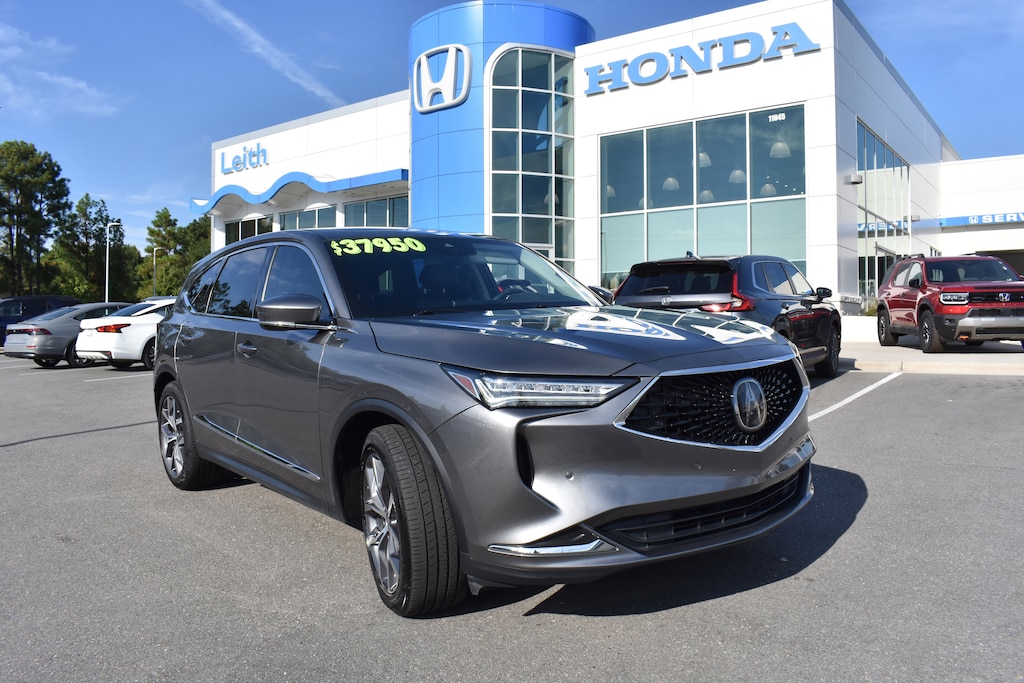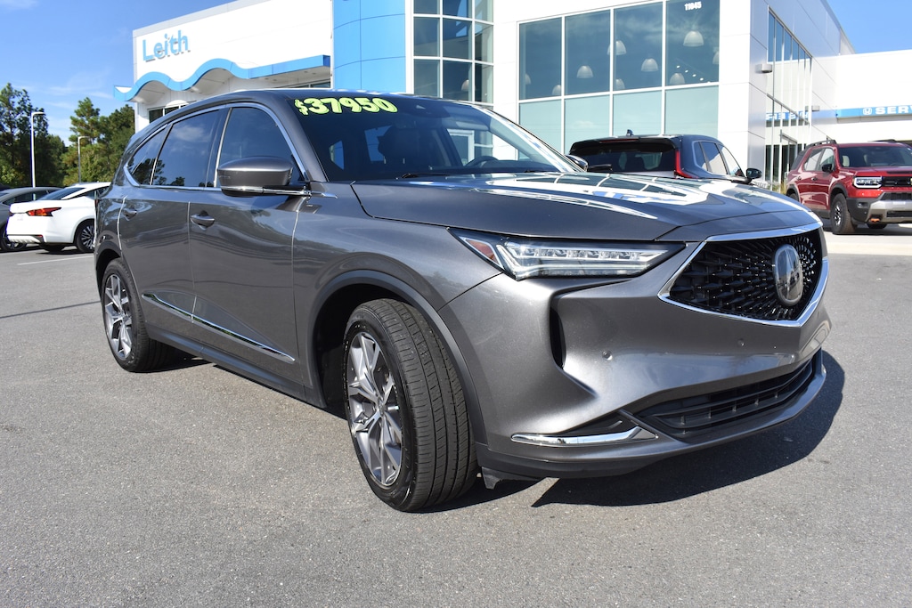 CARFAX One-Owner. Liquid Carbon Metallic 2022 Acura MDX Technology FWD 10-Speed Automatic 3.5L V6 SOHC i-VTEC 24V 12 Speakers, 3rd row seats: split-bench, 4-Wheel Disc Brakes, 4.17 Axle Ratio, A/V remote: CabinControl, ABS brakes, Air Conditioning, Alloy wheels, AM/FM radio: SiriusXM, Anti-whiplash front head restraints, Apple CarPlay/Android Auto, Audio memory, Auto High-beam Headlights, Auto tilt-away steering wheel, Auto-dimming Rear-View mirror, Automatic temperature control, Brake assist, Bumpers: body-color, Compass, Delay-off headlights, Dual front impact airbags, Dual front side impact airbags, Electronic Stability Control, Emergency communication system: AcuraLink, Exterior Parking Camera Rear, Four wheel independent suspension, Front anti-roll bar, Front Bucket Seats, Front Center Armrest, Front dual zone A/C, Fully automatic headlights, Garage door transmitter: HomeLink, Heated door mirrors, Heated front seats, Heated Front Sport Seats, HVAC memory, Illuminated entry, Knee airbag, Lane departure: Lane Keeping Assist System (LKAS) active, Leather steering wheel, Low tire pressure warning, Memory seat, Navigation system: Acura Navigation System with 3D View, Occupant sensing airbag, Outside temperature display, Overhead airbag, Panic alarm, Perforated Premium Milano Leather Trimmed Seats, Power door mirrors, Power driver seat, Power Liftgate, Power moonroof, Power passenger seat, Power steering, Power windows, Premium audio system: Acura/ELS Surround, Radio data system, Radio: ELS Studio Premium Audio System, Rain sensing wipers, Rear air conditioning, Rear anti-roll bar, Rear reading lights, Rear seat center armrest, Rear window defroster, Rear window wiper, Remote keyless entry, Security system, Speed control, Speed-sensing steering, Speed-Sensitive Wipers, Split folding rear seat, Spoiler, Steering wheel memory, Steering wheel mounted audio controls, Tachometer, Telescoping steering wheel, Tilt steering wheel, Traction control, Trip computer, Turn signal indicator mirrors, Variably intermittent wipers, Wheels: 20" x 9" Aluminum Alloy.