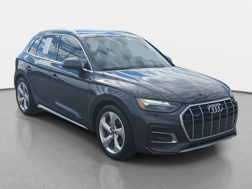Manhattan Gray Metallic 2021 Audi Q5 45 Premium Plus quattro quattro 7-Speed Automatic S tronic 2.0L Turbocharged Black w/Leather Seating Surfaces, Adaptive Cruise Control w/Traffic Jam Assist, Audi Active Lane Assist, Audi Phone Box, Audi Virtual Cockpit Plus, Auto High-beam Headlights, Convenience Package, Exterior Parking Camera Rear, Four wheel independent suspension, Front dual zone A/C, Garage door transmitter: HomeLink, Genuine wood console insert, Genuine wood dashboard insert, Genuine wood door panel insert, Hands-On Detection Steering Wheel, Heated 8-Way Power Front Bucket Seats, Leatherette Covered Center Console & Door Armrests, Panoramic Sunroof, Power Liftgate, Premium Plus Package, Rain sensing wipers, Rear air conditioning, Top View Camera System, Wheels: 19" 5-Double-Arm Design Bi-Color Finish.