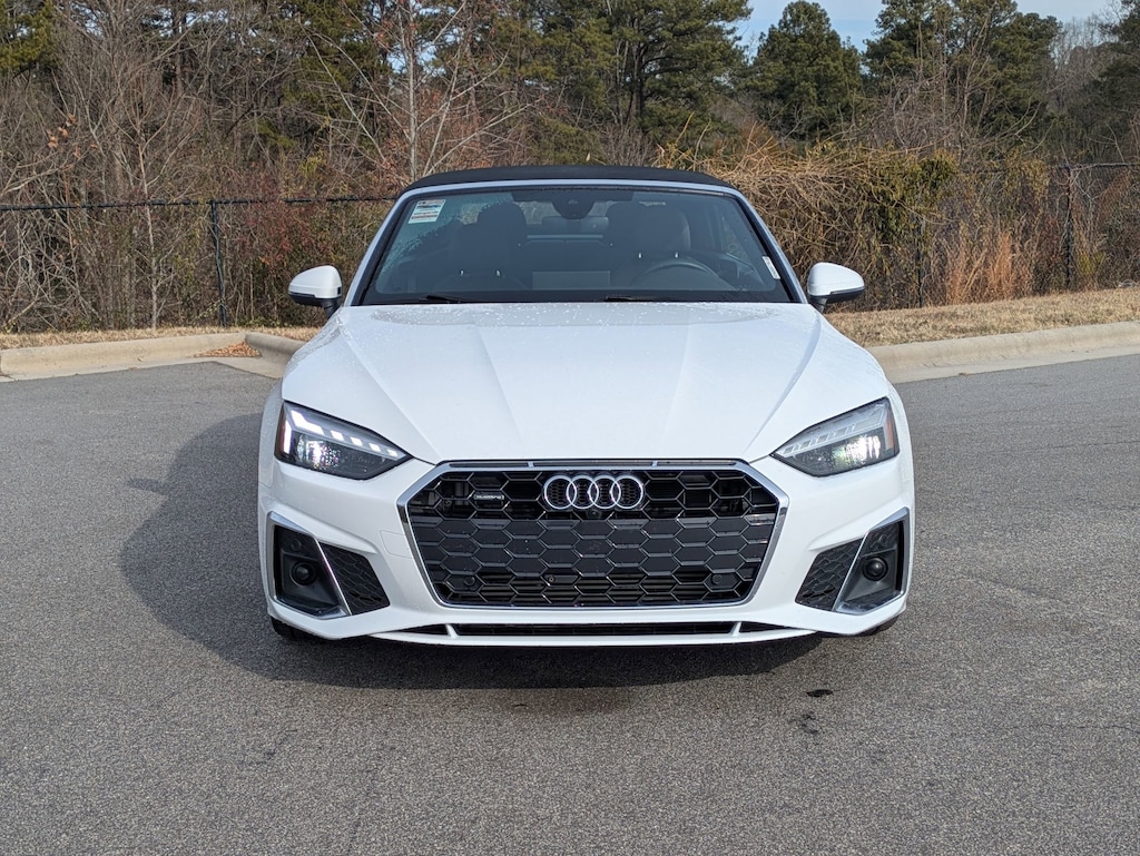 Clean CARFAX. CARFAX One-Owner. White 2024 Audi A5 45 S line Premium Plus quattro quattro 7-Speed Automatic S tronic 2.0L 4-Cylinder TFSI 1-OWNER, CLEAN CARFAX, LOCAL TRADE IN, BACK UP CAMERA, LEATHER, HEATED SEATS, ALL WHEEL DRIVE, HOMELINK GARAGE DOOR TRANSMITTER, REFRIGERATED/COOLED BOX LOCATED IN TEH GLOVEBOX, HEATED LEATHER STEERING WHEEL, BLACK GRILLE W CHROME SURROUND, POWER CONVERTIBLE TOP W LINING, GLASS REAR WINDOW, 1-OWNER, CLEAN CARFAX, MUST SEE!, quattro, Black Leather, 10 Speakers, ABS brakes, Auto High-beam Headlights, Auto-dimming Rear-View mirror, Automatic temperature control, Compass, Electronic Stability Control, Four wheel independent suspension, Front dual zone A/C, Front fog lights, Genuine wood console insert, Genuine wood dashboard insert, Genuine wood door panel insert, Glass rear window, Heated Front Sport Seats, Illuminated entry, Leather Seating Surfaces, Leather Shift Knob, Leather steering wheel, Power convertible roof, Power driver seat, Power passenger seat, Radio: Audi Sound System, Rain sensing wipers, Rear air conditioning, Split folding rear seat, Steering wheel mounted audio controls, Traction control, Turn signal indicator mirrors, Wheels: 18" 5-Double-Spoke Design.