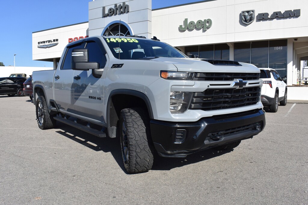 Clean CARFAX. CARFAX One-Owner. Slate Gray Metallic 2024 Chevrolet Silverado 2500HD Custom 4WD 10-Speed Automatic Duramax 6.6L V8 Turbodiesel 10-Way Power Driver Seat Adjuster w/Lumbar, 120-Volt Bed Mounted Power Outlet, 120-Volt Interior Power Outlet, 170 Amp Alternator, 2-Speed Electronic Shift Transfer Case, 220 Amp Alternator, 3.42 Rear Axle Ratio, 3.5" Diagonal Monochromatic Display DIC, 4-Wheel Disc Brakes, 6 Speakers, 6-Speaker Audio System, 720 Cold-Cranking Amps Heavy-Duty Battery, ABS brakes, Air Conditioning, Alloy wheels, AM/FM radio: SiriusXM with 360L, Apple CarPlay/Android Auto, Auto High-beam Headlights, Auto-Dimming Inside Rear-View Mirror, Black Chevytec Spray-On Bedliner, Black Mirror Caps, Black Name Plates (LPO), Black Tailgate Lettering (LPO), Bluetooth® For Phone, Brake assist, Chevrolet Connected Access Capable, Cloth Seat Trim, Color-Keyed Carpeting Floor Covering, Compass, Custom Convenience Package, Custom Value Package, CX Safety Package, Dark Essentials Package (LPO), Deep-Tinted Glass, Delay-off headlights, Dual front impact airbags, Dual front side impact airbags, Dual Rear USB Ports (Charge Only), Durabed Pickup Bed, Electric Rear-Window Defogger, Electronic Cruise Control w/Set & Resume Speed, Electronic Stability Control, Engine Block Heater, Exhaust Brake, EZ Lift Power Lock & Release Tailgate, Front 40/20/40 Split-Bench Seats w/Lockable Storage, Front anti-roll bar, Front Black Bowtie Emblem (LPO), Front Rubberized Vinyl Floor Mats, Front wheel independent suspension, Fully automatic headlights, Gooseneck/5th Wheel Prep Package, HD Rear Vision Camera, Heated & Auto-Dimming Vertical Trailering Mirrors, Heated door mirrors, Heated Vertical Trailering Mirrors, High Idle Switch, Hill Descent Control, Hitch Package (LPO), Integrated Trailer Brake Controller, Lane Change Alert w/Side Blind Zone Alert, LED Cargo Area Lighting, LED Smoked Amber Roof Marker Lamps, Locking Tailgate, Low tire pressure warning, Manual Tailgate Function w/No EZ Lift, Manual Tilt-Wheel Steering Column, Max Trailering Package, Occupant sensing airbag, Off-Road Suspension, OnStar & Chevrolet Connected Services Capable, Overhead airbag, Panic alarm, Power Door Locks, Power door mirrors, Power Front Windows w/Driver Express Up/Down, Power Front Windows w/Passenger Express Down, Power Rear Windows w/Express Down, Power steering, Power windows, Preferred Equipment Group 1CX, Premium audio system: Chevrolet Infotainment 3, Push Button Start, Radio: Chevrolet Infotainment 3 System, Rear 60/40 Folding Bench Seat (Folds Up), Rear Cross Traffic Alert, Rear Park Assist, Rear reading lights, Rear Rubberized Vinyl Floor Mats, Rear step bumper, Remote Keyless Entry, Remote keyless entry, Remote Vehicle Starter System, SiriusXM w/360L, Speed control, Split folding rear seat, Standard Tailgate, Suspension Package, Tachometer, Tilt steering wheel, Traction control, Trip computer, Turn signal indicator mirrors, Unauthorized Entry Theft-Deterrent System, Upfitter Switch Kit (5), Variably intermittent wipers, Voltmeter, Wheels: 20" 10-Spoke Machined Aluminum, Wi-Fi Hotspot Capable, Winter Grille Cover, Wireless Phone Projection, Z71 Off-Road Package.