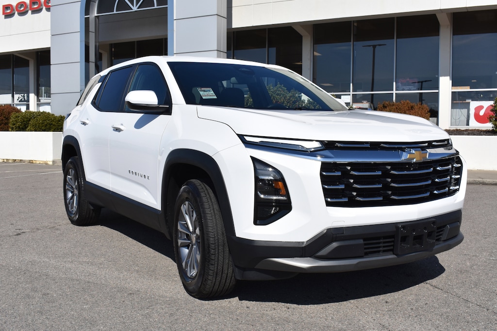 Clean CARFAX. CARFAX One-Owner. Summit White 2025 Chevrolet Equinox LT AWD 8-Speed Automatic 1.5L DOHC 3.47 Final Drive Axle Ratio, 4-Wheel Disc Brakes, 6 Speakers, ABS brakes, Air Conditioning, Alloy wheels, AM/FM radio: SiriusXM, Auto High-beam Headlights, Brake assist, Bumpers: body-color, Cloth Seat Trim, Compass, Delay-off headlights, Driver 6-Way Manual Seat Adjuster, Dual front impact airbags, Dual front side impact airbags, Electronic Stability Control, Emergency communication system: OnStar and Chevrolet connected services capable, Four wheel independent suspension, Front anti-roll bar, Front Passenger 4-Way Manual Seat Adjuster, Fully automatic headlights, Heated door mirrors, Heated Driver & Front Passenger Seats, Heated front seats, Heated steering wheel, Illuminated entry, Low tire pressure warning, Navigation System, Occupant sensing airbag, Overhead airbag, Panic alarm, Passenger vanity mirror, Power door mirrors, Power steering, Power windows, Preferred Equipment Group 2LT, Premium audio system: Chevrolet Infotainment 3, Radio data system, Radio: 11.3" Diagonal Advanced Color LCD Display, Rear anti-roll bar, Rear window defroster, Rear window wiper, Remote keyless entry, Security system, SiriusXM, Speed control, Speed-sensing steering, Split folding rear seat, Spoiler, Steering wheel mounted audio controls, Tachometer, Telescoping steering wheel, Tilt steering wheel, Traction control, Trip computer, Variably intermittent wipers, Wheels: 17" Grazen Metallic Machined-Face Aluminum.