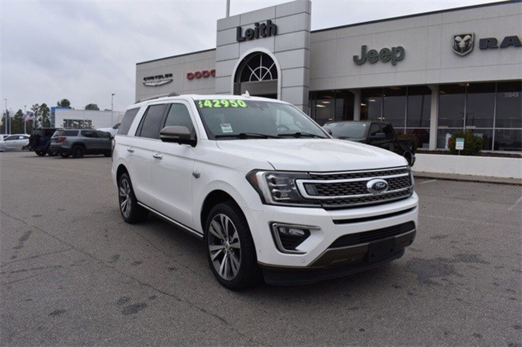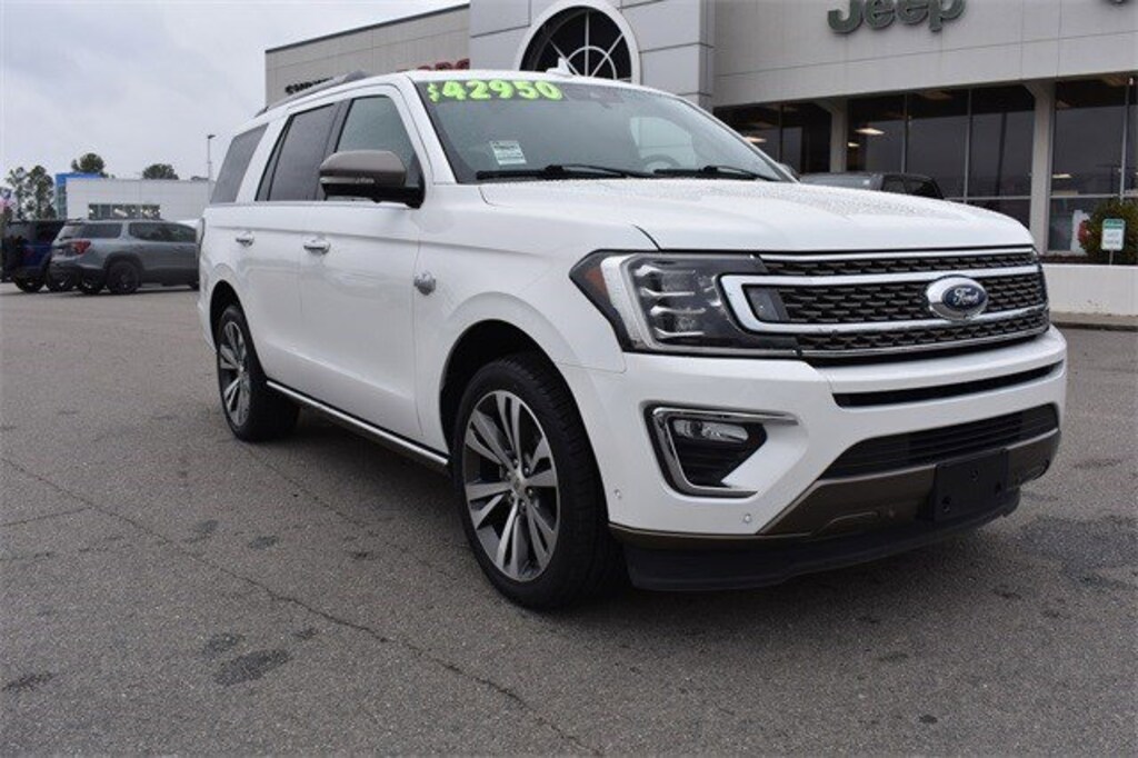 Star White Metallic Tri-Coat 2021 Ford Expedition King Ranch RWD 10-Speed Automatic EcoBoost 3.5L V6 GTDi DOHC 24V Twin Turbocharged 12 Speakers, 1st & 2nd Row Floor Liners w/Carpet Mats, 3.73 Axle Ratio, 3rd row seats: split-bench, 4-Wheel Disc Brakes, ABS brakes, Adjustable pedals, Air Conditioning, Alloy wheels, AM/FM radio: SiriusXM, Auto High-beam Headlights, Auto-dimming door mirrors, Auto-dimming Rear-View mirror, Automatic temperature control, Brake assist, Bumpers: body-color, Compass, Delay-off headlights, Dual front impact airbags, Dual front side impact airbags, Electronic Stability Control, Emergency communication system: SYNC 3 911 Assist, Equipment Group 400A Standard Package, Exterior Parking Camera Rear, Four wheel independent suspension, Front anti-roll bar, Front dual zone A/C, Front fog lights, Fully automatic headlights, Garage door transmitter, Genuine wood console insert, Genuine wood dashboard insert, Genuine wood door panel insert, Heated door mirrors, Heated front seats, Heated rear seats, Heated steering wheel, Heated/Ventilated Del Rio Lthr Fr Captain's Chairs, Heavy-Duty Engine Radiator, Heavy-Duty Trailer Tow Package, Illuminated entry, Integrated Trailer Brake Controller, Leather steering wheel, Low tire pressure warning, Memory seat, Navigation System, Occupant sensing airbag, Outside temperature display, Overhead airbag, Panic alarm, Pedal memory, Power door mirrors, Power driver seat, Power Liftgate, Power moonroof, Power passenger seat, Power steering, Power windows, Pro Trailer Backup Assist, Radio data system, Radio: B&O Sound System by Bang & Olufsen, Rain sensing wipers, Rear air conditioning, Rear anti-roll bar, Rear audio controls, Rear window defroster, Rear window wiper, Reclining 3rd row seat, Remote keyless entry, Reversible Cargo Mat, Roof rack: rails only, Security system, SiriusXM Satellite Radio, Speed control, Speed-sensing steering, Speed-Sensitive Wipers, Split folding rear seat, Steering wheel memory, Steering wheel mounted audio controls, SYNC 3 Communications & Entertainment System, Tachometer, Telescoping steering wheel, Tilt steering wheel, Traction control, Trip computer, Turn signal indicator mirrors, Variably intermittent wipers, Ventilated front seats, Voltmeter, Wheels: 22" 6-Spoke Painted Machined-Face Aluminum.