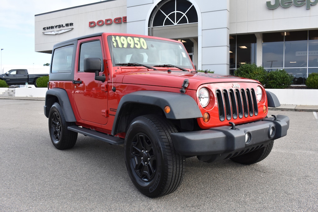 Clean CARFAX. Flame Red Clearcoat 2013 Jeep Wrangler Sport 4WD 6-Speed Manual 3.6L V6 24V VVT 16" x 7.0" Luxury Styled Steel Wheels, 3.73 Rear Axle Ratio, 4-Wheel Disc Brakes, 6 Speakers, ABS brakes, Air Conditioning, AM/FM radio, Black 3-Piece Hard Top, Brake assist, CD player, Cloth Bucket Seats, Compass, Dual front impact airbags, Electronic Stability Control, Freedom Panel Storage Bag, Front anti-roll bar, Front fog lights, Integrated roll-over protection, Low tire pressure warning, Normal Duty Suspension, Occupant sensing airbag, Outside temperature display, Power steering, Quick Order Package 23B, Radio: Uconnect 130 AM/FM/CD/MP3, Rear anti-roll bar, Rear Window Defroster, Rear Window Wiper/Washer, SIRIUS Satellite Radio, Speed control, Steering wheel mounted audio controls, Sunrider Soft Top, Tachometer, Tilt steering wheel, Tinted Rear Quarter & Liftgate Windows, Traction control, Trailer Tow Group, Trailer Tow w/4-Pin Connector Wiring, Trip computer, Variably intermittent wipers.