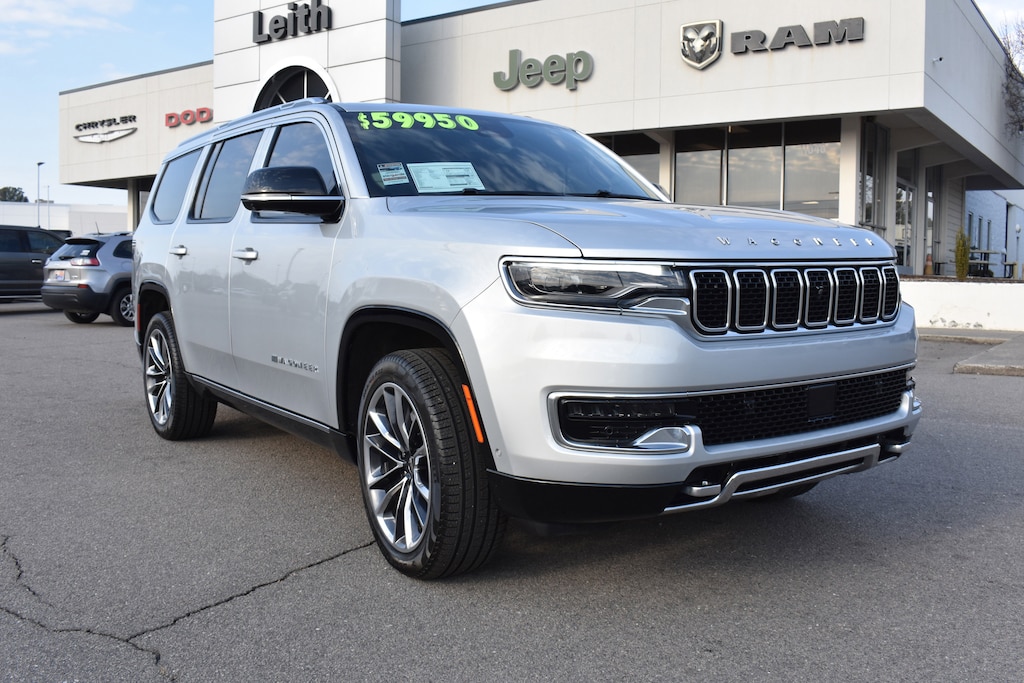 Clean CARFAX. CARFAX One-Owner. Silver Zynith 2024 Jeep Wagoneer Series III 4WD 8-Speed Automatic 3.0L I6 10 Speakers, 19 Speaker McIntosh Audio System, 2nd Row Manual Window Shades, 3 Panel Sunroof, 3.92 Rear Axle Ratio, 3rd row seats: bench, 4-Wheel Disc Brakes, ABS brakes, Adjustable pedals, Adjustable Roof Rail Crossbars, Air Conditioning, All-Season Floor Mats, Alloy wheels, AM/FM radio: SiriusXM with 360L, Amazon Fire TV Built-In, Anti-whiplash front head restraints, Apple CarPlay/Android Auto, Audio memory, Auto High-beam Headlights, Auto-dimming door mirrors, Auto-dimming Rear-View mirror, Auto-leveling suspension, Automatic temperature control, Brake assist, Bumpers: body-color, Cargo Cover, Cargo Tray, Chrome Tow Hooks, Compass, Convenience Group I, Delay-off headlights, Drowsy Driver Detection, Dual front impact airbags, Dual front side impact airbags, Electronic Rear Limited Slip Differential, Electronic Stability Control, Emergency communication system: Wagoneer Connect, Exterior Parking Camera Rear, Four wheel independent suspension, Front anti-roll bar, Front dual zone A/C, Front fog lights, Fully automatic headlights, Garage door transmitter, Genuine wood console insert, Genuine wood dashboard insert, Genuine wood door panel insert, HD Trailer Tow Package, Heated door mirrors, Heated front seats, Heated rear seats, Heated steering wheel, Heavy-Duty Engine Cooling, Illuminated entry, Intersection Collision Assist System, Knee airbag, Leather Trimmed Bucket Seats, Locking In-Vehicle Safe, Low tire pressure warning, Luxury Front & Rear Floor Mats, Memory seat, MOPAR Interior Protection Package, Navigation System, Normal Duty Suspension, Occupant sensing airbag, Outside temperature display, Overhead airbag, Overhead console, P&P Park & Unpark Assist w/Stop System, Panic alarm, Pedal memory, Power adjustable front head restraints, Power Deployable Running Boards, Power door mirrors, Power driver seat, Power Liftgate, Power passenger seat, Power steering, Power windows, Premium Group I, Quick Order Package 25N, Radio data system, Radio: Uconnect 5 Nav w/10.1" Display, Rain sensing wipers, Rear air conditioning, Rear anti-roll bar, Rear dual zone A/C, Rear Seat Video Group 1, Rear window defroster, Rear window wiper, Reclining 3rd row seat, Remote keyless entry, Removable Rear Tow Hook, Reversible Carpet/Vinyl Cargo Mat, Seatback Video Screens, Security system, Selec-Speed Control, Side Distance Warning, Speed control, Speed-sensing steering, Speed-Sensitive Wipers, Split folding rear seat, Steering wheel memory, Steering wheel mounted audio controls, Surround View Camera System, Tachometer, Telescoping steering wheel, Tilt steering wheel, Traction control, Traffic Sign Recognition, Trailer Brake Control, Trailer Hitch Zoom, Trip computer, Turn signal indicator mirrors, Variably intermittent wipers, Ventilated front seats, Video USB Port, Voltmeter, Wheels: 22" x 9.0" Premium 3 Aluminum.