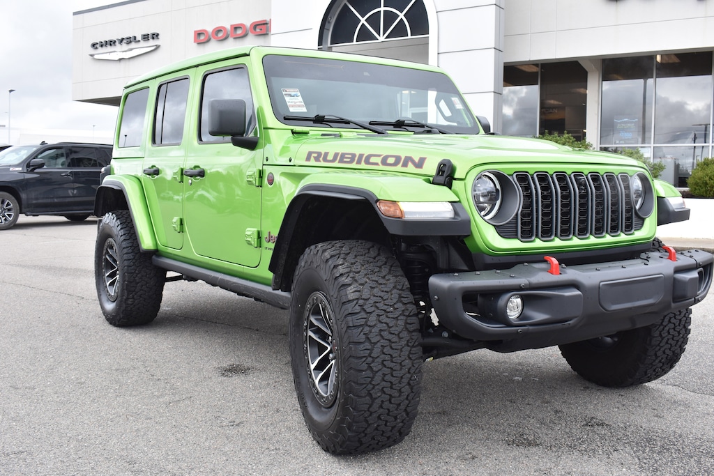 Clean CARFAX. CARFAX One-Owner. Mojito Clearcoat 2025 Jeep Wrangler Rubicon X 4WD 8-Speed Automatic 3.6L V6 24V VVT 12.3" Touchscreen Display, 35" Tire Suspension, 4-Wheel Disc Brakes, 4G LTE Wi-Fi Hot Spot, 8 Speakers, 97 MPH Vehicle Max Speed Calibration, ABS brakes, Acoustic Front Seat Area Carpet, Acoustic Laminated Front Door Glass, Air Conditioning, Alloy wheels, Alpine Premium Audio System, AM/FM radio: SiriusXM, Anti-Lock 4-Wheel Disc Perf Brakes, Apple CarPlay, Apple CarPlay/Android Auto, Auto High Beam Headlamp Control, Auto-Dimming Rear-View Mirror, Automatic temperature control, Aux Battery, Auxiliary Switches, Blind Spot & Cross Path Detection, Body Color 3-Piece Hard Top, Body Color Rubicon Highline Flare, Brake assist, Class II Receiver Hitch, Cloth Low-Back Bucket Seats, Compass, Connected Travel & Traffic Services, Connectivity - US/Canada, Convenience Group, Delay-off headlights, Dual front impact airbags, Dual front side impact airbags, Electronic Stability Control, Emergency communication system: Jeep Connect, Freedom Panel Storage Bag, Front anti-roll bar, Front Center Armrest w/Storage, Front dual zone A/C, Front fog lights, Front License Plate Bracket (DISC), Fully automatic headlights, Google Android Auto, GPS Navigation, HD Radio, Heated door mirrors, Heated Front Seats, Heated Steering Wheel, Illuminated entry, Integrated Off-Road Camera, Integrated roll-over protection, Integrated Voice Command w/Bluetooth, Leather Wrapped Park Brake Handle, Leather Wrapped Shift Knob, Low tire pressure warning, MOPAR All-Weather Floor Mats, MOPAR Hardtop Headliner, MOPAR Hinge-Gate Reinforcement, Nappa Leather Seats, Non-Lock Fuel Cap w/o Discriminator, Occupant sensing airbag, Outside temperature display, Overhead airbag, Panic alarm, ParkSense Rear Park Assist System, ParkView Rear Back-Up Camera, Performance Suspension, Power 4-Way Driver Lumbar Adjust, Power 4-Way Passenger Lumbar Adjust, Power Adjust 8-Way Driver Seat, Power Adjust 8-Way Front Passenger Seat, Power door mirrors, Power steering, Power Top Quarter Window Storage Bag, Power windows, Premium Door Trim Panel, Quick Order Package 24Y Rubicon X, Radio data system, Radio: Uconnect 5 Nav w/12.3" Display, Radio: Uconnect 5 w/12.3" Display, Rear anti-roll bar, Rear reading lights, Rear Window Defroster, Rear Window Wiper/Washer, Remote keyless entry, Removable Rear Quarter Windows, Safety Group, Security system, SiriusXM Radio Service, SiriusXM w/360L, Sky 1-Touch Power Top, Speed control, Split folding rear seat, Steel Front Bumper, Steel Rear Bumper, Steering wheel mounted audio controls, Stop-Start Dual Battery System, Tachometer, Technology Group, Telescoping steering wheel, Tilt steering wheel, Traction control, Trailer Tow Prep Package, Trip computer, Universal Garage Door Opener, Variably intermittent wipers, Voltmeter, Wheel Flare Extensions, Wheels: 17" x 8" Machined w/Black Pockets, Xtreme 35" Tire Package.