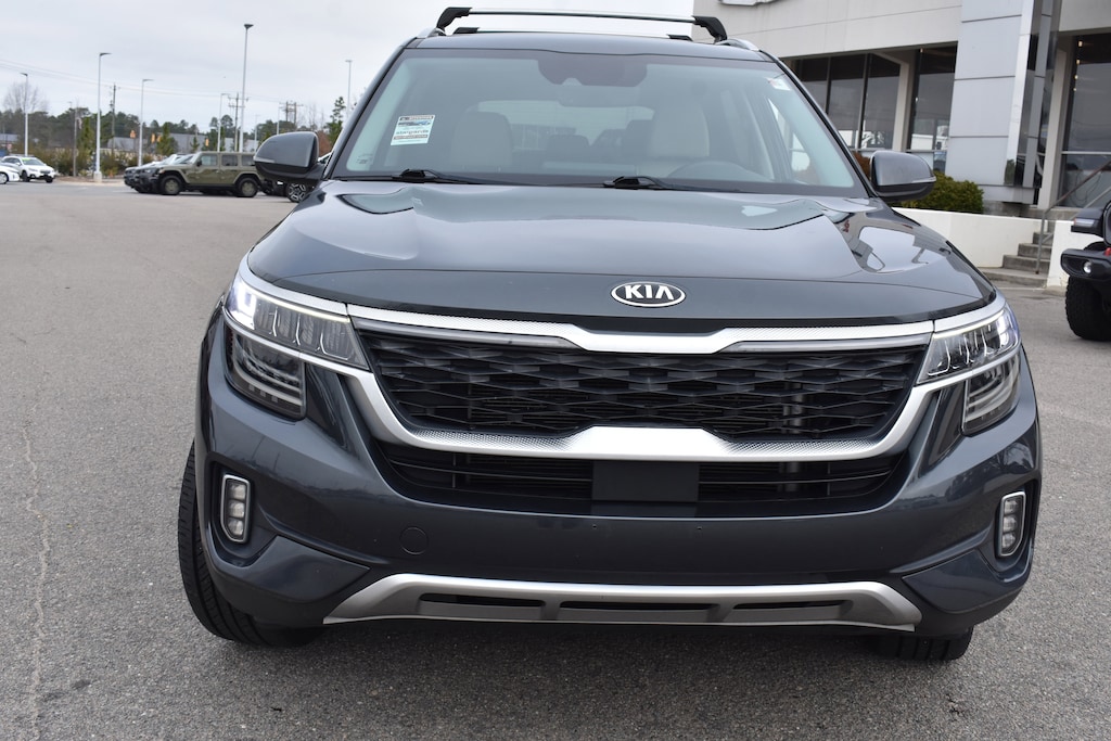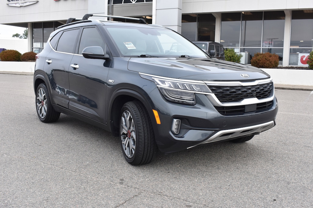 Priced below KBB Fair Purchase Price! Gravity Gray 2021 Kia Seltos SX AWD 7-Speed Automatic I4 18" Alloy Wheels, 4-Wheel Disc Brakes, 4.643 Axle Ratio, 8 Speakers, ABS brakes, Air Conditioning, Alloy wheels, AM/FM radio: SiriusXM, Apple CarPlay & Android Auto, Auto-dimming Rear-View mirror, Automatic temperature control, Brake assist, Bumpers: body-color, Cross Bars, Delay-off headlights, Dual front impact airbags, Dual front side impact airbags, Electronic Stability Control, Emergency communication system, Exterior Parking Camera Rear, Four wheel independent suspension, Front anti-roll bar, Front fog lights, Fully automatic headlights, Gray Interior Package, Heated door mirrors, Heated Front Bucket Seats, Heated front seats, Leather Seat Trim, Leather Shift Knob, Lifestyle Hitch, Low tire pressure warning, Navigation System, Occupant sensing airbag, Outside temperature display, Overhead airbag, Overhead console, Panic alarm, Power door mirrors, Power driver seat, Power steering, Power windows, Puddle Light, Radio: AM/FM/MP3 Display Audio, Rear window defroster, Rear window wiper, Remote keyless entry, Security system, Smart Key w/ Push Button and Remote Start, Speed control, Speed-sensing steering, Split folding rear seat, Spoiler, Steering wheel mounted audio controls, Tachometer, Telescoping steering wheel, Tilt steering wheel, Traction control, Trip computer, Turn signal indicator mirrors, Variably intermittent wipers.