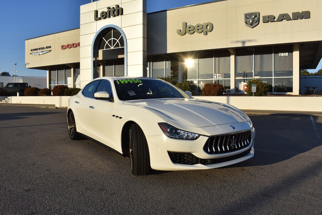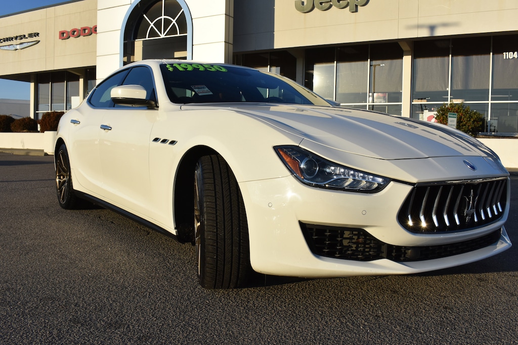 Clean CARFAX. Bianco 2019 Maserati Ghibli RWD ZF 8-Speed Automatic 3.0L V6 12-Way Power Heated Front Seats, 4-Wheel Disc Brakes, 8 Speakers, ABS brakes, Air Conditioning, Alloy wheels, AM/FM radio: SiriusXM, Anti-whiplash front head restraints, Apple CarPlay/Android Auto, Auto-dimming door mirrors, Auto-dimming Rear-View mirror, Automatic temperature control, Brake assist, Bumpers: body-color, Compass, Delay-off headlights, Dual front impact airbags, Dual front side impact airbags, Electronic Stability Control, Exterior Parking Camera Rear, Four wheel independent suspension, Front anti-roll bar, Front Center Armrest w/Storage, Front dual zone A/C, Garage door transmitter: HomeLink, Heated door mirrors, Heated front seats, High intensity discharge headlights: Bi-Xenon, Illuminated entry, Knee airbag, Leather Shift Knob, Leather steering wheel, Leather Upholstery, Low tire pressure warning, Memory seat, Navigation System, Occupant sensing airbag, Outside temperature display, Overhead airbag, Overhead console, Panic alarm, Passenger door bin, Power door mirrors, Power driver seat, Power moonroof, Power passenger seat, Power steering, Power windows, Radio data system, Radio: AM/FM w/Maserati Touch Control Plus & Nav, Rain sensing wipers, Rear anti-roll bar, Rear fog lights, Rear window defroster, Remote keyless entry, Security system, Speed control, Speed-sensing steering, Speed-Sensitive Wipers, Split folding rear seat, Steering wheel memory, Steering wheel mounted audio controls, Tachometer, Tilt steering wheel, Traction control, Trip computer, Turn signal indicator mirrors, Variably intermittent wipers, Voltmeter, Wheels: 19" Silver Poseidone.