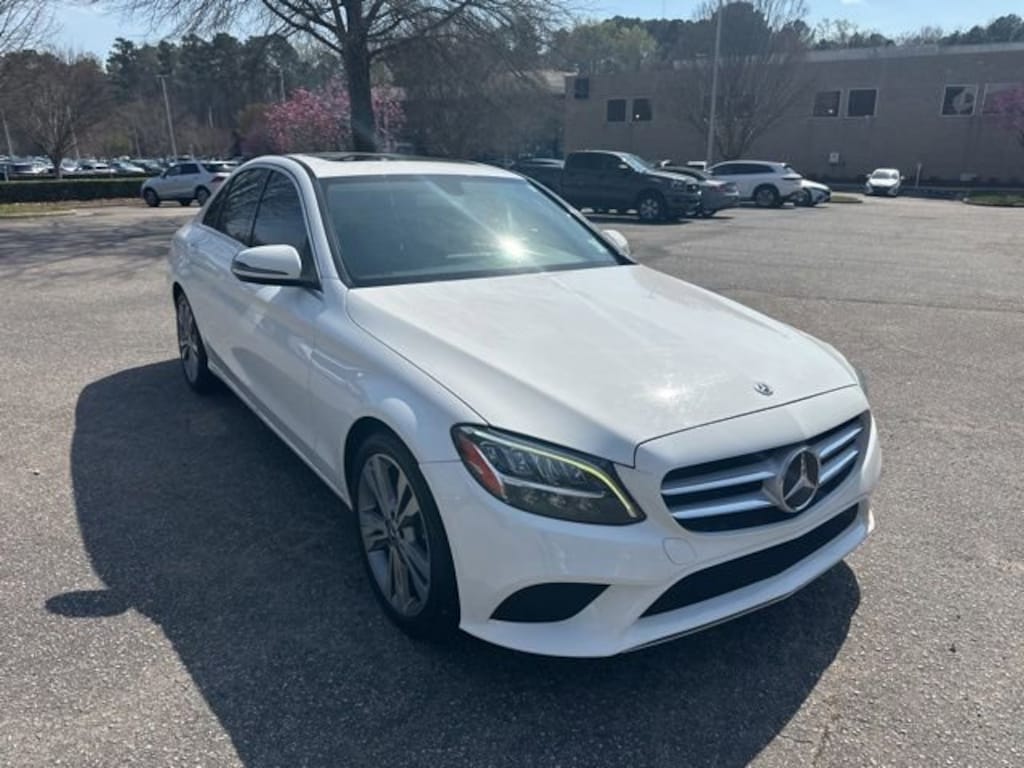 Polar White 2020 Mercedes-Benz C-Class C 300 2.0L I4 Turbocharged 10.25" High-Resolution Center Display, 4-way Power Driver's Lumbar Support, 4-Wheel Disc Brakes, ABS brakes, Air Conditioning, Anti-whiplash front head restraints, Apple CarPlay®/Android Auto®, Automatic temperature control, Child-Seat-Sensing Airbag, Compass, Driver door bin, Driver vanity mirror, Dual front impact airbags, Dual front side impact airbags, Emergency communication system: Mercedes me connect, Exterior Parking Camera Rear, Four wheel independent suspension, Front anti-roll bar, Front Bucket Seats, Front Center Armrest, Front dual zone A/C, Front reading lights, Garage door transmitter: Homelink, Genuine wood console insert, Genuine wood dashboard insert, Head restraints memory, Heated door mirrors, Heated Front Seats, Illuminated entry, Knee airbag, Low tire pressure warning, MB-Tex Upholstery, Memory seat, Occupant sensing airbag, Outside temperature display, Overhead airbag, Overhead console, Panic alarm, Passenger door bin, Passenger vanity mirror, Power adjustable front head restraints, Power door mirrors, Power driver seat, Power Front Seats w/Driver Memory, Power passenger seat, Power steering, Power windows, Rain sensing wipers, Rear anti-roll bar, Rear reading lights, Rear seat center armrest, Rear side impact airbag, Rear window defroster, Remote keyless entry, Security system, Speed-sensing steering, Split folding rear seat, Steering wheel memory, Steering wheel mounted audio controls, Tachometer, Telescoping steering wheel, Tilt steering wheel, Traction control, Trip computer, Turn signal indicator mirrors, Variably intermittent wipers, Wheels: 18" Twin 5-Spoke.
