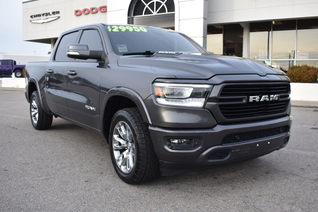 Granite Crystal Metallic Clearcoat 2020 Ram 1500 Laramie 4WD 8-Speed Automatic HEMI 5.7L V8 Multi Displacement VVT 1-Yr SiriusXM Guardian Trial, 10 Speakers, 12" Touchscreen Display, 3 Rear Seat Head Restraints, 3.21 Rear Axle Ratio, 4 Way Front Headrests, 4-Wheel Disc Brakes, 48V Belt Starter Generator, 4G LTE Wi-Fi Hot Spot, 5-Year SiriusXM Traffic Service, 5-Year SiriusXM Travel Link Service, ABS brakes, Adjustable pedals, Air Conditioning, Alloy wheels, AM/FM radio: SiriusXM, Apple CarPlay, Apple CarPlay/Android Auto, Audio memory, Auto High Beam Headlamp Control, Auto-dimming door mirrors, Auto-dimming Rear-View mirror, Automatic temperature control, Black Interior Accents, Blind Spot & Cross Path Detection, Body Color Door Handles, Body Color Exterior Mirrors, Body Color Front Bumper, Body Color Premium Power Mirrors, Body Color Rear Bumper w/Step Pads, Brake assist, Bumpers: chrome, Compass, Delay-off headlights, Disassociated Touchscreen Display, Driver Seat Memory, Dual front impact airbags, Dual front side impact airbags, Electronic Stability Control, Foam Bottle Insert (Door Trim Panel), For Details, Visit DriveUconnect.com, Front anti-roll bar, Front Center Armrest w/Storage, Front dual zone A/C, Front fog lights, Front Seat Back Map Pockets, Front wheel independent suspension, Fully automatic headlights, Garage door transmitter, Google Android Auto, GPS Antenna Input, GPS Navigation, Grille Surround 3 Body Color Tex 2 Black, HD Radio, Heated door mirrors, Heated Front Seats, Heated front seats, Heated Steering Wheel, Heated steering wheel, Illuminated entry, Integrated Center Stack Radio, Laramie Level 1 Equipment Group, Leather steering wheel, Leather Trim 40/20/40 Bench Seat, Low tire pressure warning, Memory seat, Occupant sensing airbag, Outside temperature display, Overhead airbag, Panic alarm, ParkSense Front/Rear Park Assist w/Stop, ParkSense Front/Rear Park Assist w/Stop (DISC), ParkView Rear Back-Up Camera, Pedal memory, Power 4-Way Driver Lumbar Adjust, Power 4-Way Passenger Lumbar Adjust, Power 8-Way Driver & Passenger Seats, Power door mirrors, Power driver seat, Power passenger seat, Power steering, Power windows, Quick Order Package 25H Laramie, Radio data system, Radio: Uconnect 12 w/Navigation, Rain Sensitive Windshield Wipers, Rear 60/40 Folding Split Recline Seat, Rear anti-roll bar, Rear step bumper, Rear window defroster, Remote keyless entry, Remote Tailgate Release, Security system, SiriusXM Satellite Radio, SiriusXM Traffic Plus, SiriusXM Travel Link, SiriusXM w/360L, Speed control, Split folding rear seat, Sport Appearance Package, Sport Decal, Sport Performance Hood, Steering wheel mounted audio controls, Tachometer, Tailgate Ajar Warning Lamp, Telescoping steering wheel, Tilt steering wheel, Traction control, Trip computer, Turn signal indicator mirrors, USB Host Flip, Variably intermittent wipers, Ventilated Front Seats, Ventilated front seats, Voltmeter, Wheels: 20" x 9" Premium Painted w/Inserts.