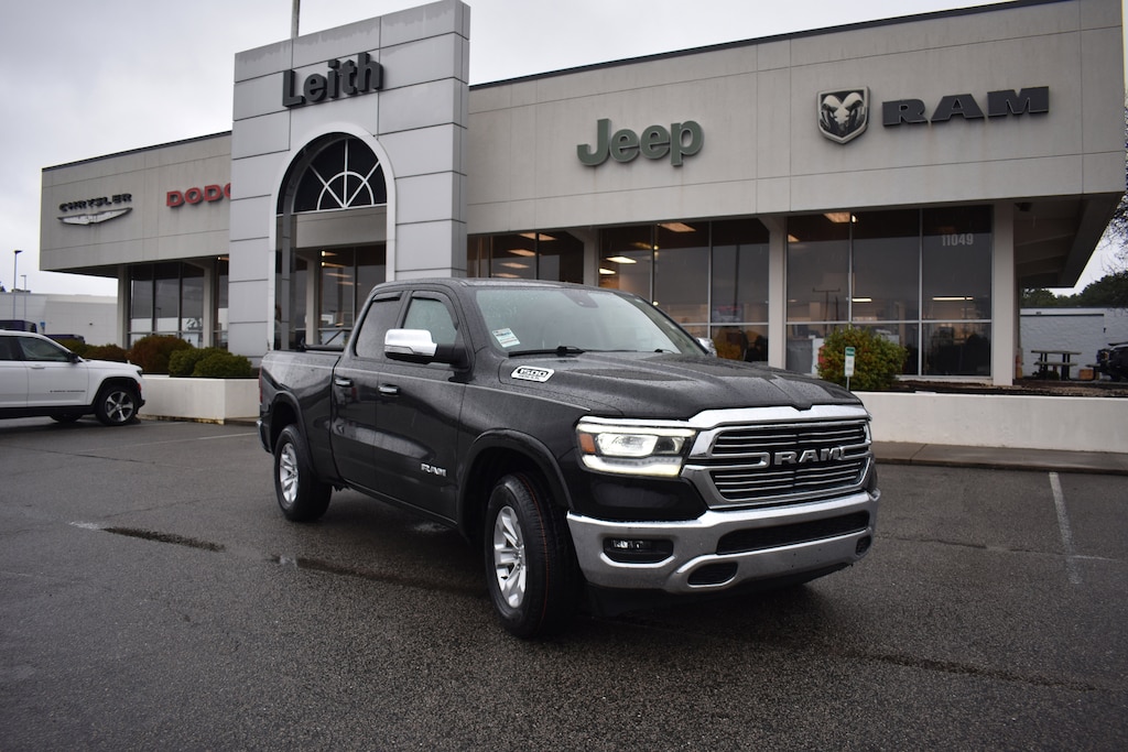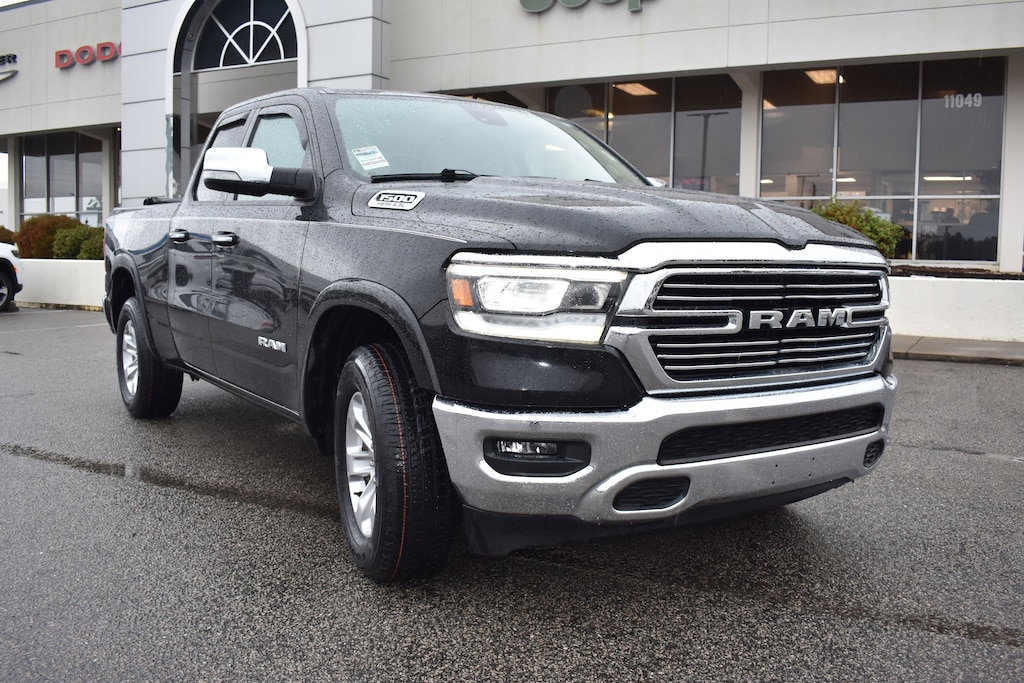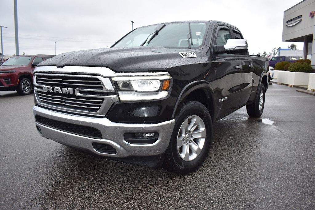 Diamond Black Crystal Pearlcoat 2020 Ram 1500 Laramie 4WD 8-Speed Automatic HEMI 5.7L V8 Multi Displacement VVT 10 Speakers, 3 Rear Seat Head Restraints, 3.21 Rear Axle Ratio, 4 Way Front Headrests, 4-Wheel Disc Brakes, 48V Belt Starter Generator, 8.4" Touchscreen Display, ABS brakes, Adjustable pedals, Air Conditioning, Alloy wheels, AM/FM radio: SiriusXM, Apple CarPlay, Apple CarPlay/Android Auto, Audio memory, Auto-dimming door mirrors, Auto-dimming Rear-View mirror, Automatic temperature control, Brake assist, Bumpers: chrome, Compass, Delay-off headlights, Driver Seat Memory, Dual front impact airbags, Dual front side impact airbags, Electronic Stability Control, Front anti-roll bar, Front Center Armrest w/Storage, Front dual zone A/C, Front fog lights, Front wheel independent suspension, Fully automatic headlights, Garage door transmitter, Google Android Auto, GPS Antenna Input, Heated door mirrors, Heated Front Seats, Heated front seats, Heated steering wheel, Illuminated entry, Integrated Center Stack Radio, Leather steering wheel, Leather Trim 40/20/40 Bench Seat, Low tire pressure warning, Manufacturer's Statement of Origin, Memory seat, Occupant sensing airbag, Overhead airbag, Panic alarm, ParkView Rear Back-Up Camera, Pedal memory, Power 4-Way Passenger Lumbar Adjust, Power 8-Way Driver & Passenger Seats, Power door mirrors, Power driver seat, Power passenger seat, Power steering, Power windows, Quick Order Package 25H Laramie, Radio data system, Radio: Uconnect 4 w/8.4" Display, Rear 60/40 Folding Seat, Rear anti-roll bar, Rear step bumper, Rear window defroster, Remote keyless entry, Security system, SiriusXM Satellite Radio, Speed control, Split folding rear seat, Steering wheel mounted audio controls, Tachometer, Telescoping steering wheel, Tilt steering wheel, Traction control, Trip computer, Turn signal indicator mirrors, Variably intermittent wipers, Ventilated Front Seats, Ventilated front seats, Voltmeter, Wheels: 18" x 8" Aluminum Base Painted.