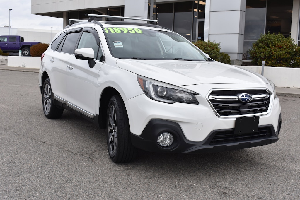 Priced below KBB Fair Purchase Price! Crystal White Pearl 2018 Subaru Outback 2.5i Touring AWD CVT Lineartronic 2.5L 4-Cylinder DOHC 16V 12 Speakers, 4-Wheel Disc Brakes, 4.111 Axle Ratio, ABS brakes, Air Conditioning, All-Weather Floor Liners, Alloy wheels, AM/FM radio: SiriusXM, Anti-whiplash front head restraints, Apple CarPlay/Android Auto, Auto High-beam Headlights, Auto-Dimming Exterior Mirror w/Approach Light, Auto-dimming Rear-View mirror, Automatic temperature control, Brake assist, Bumpers: body-color, CD player, Compass, Dual front impact airbags, Dual front side impact airbags, Electronic Stability Control, Emergency communication system: STARLINK, Exterior Parking Camera Rear, Four wheel independent suspension, Front anti-roll bar, Front dual zone A/C, Front fog lights, Fully automatic headlights, Garage door transmitter, harman/kardon Surround Sound Speaker System, harman/kardon® Speakers, Heated door mirrors, Heated rear seats, Heated Reclining Front Bucket Seats, Heated steering wheel, Illuminated entry, Leather Shift Knob, Low tire pressure warning, Map & Dome Lights LED Upgrade, Memory seat, Navigation System, Occupant sensing airbag, Outside temperature display, Overhead airbag, Panic alarm, Perforated Leather-Trimmed Upholstery, Popular Package #3, Power door mirrors, Power driver seat, Power Liftgate, Power moonroof, Power passenger seat, Power steering, Power windows, Radio: Subaru STARLINK 8.0" Multimedia Nav System, Rear anti-roll bar, Rear Seatback Protector, Rear window defroster, Rear window wiper, Remote keyless entry, Roof rack: rails only, Security system, Smartphone Integration, Speed control, Speed-sensing steering, Split folding rear seat, Spoiler, Standard Model, Steering wheel mounted audio controls, Steering Wheel Paddle Shift Control Switches, Tachometer, Telescoping steering wheel, Thule Crossbar Set - Touring, Tilt steering wheel, Traction control, Trip computer, Turn signal indicator mirrors, Variably intermittent wipers, Vehicle Information Display, Wheels: 18" x 7.0" Aluminum Alloy w/Machine Finish.
